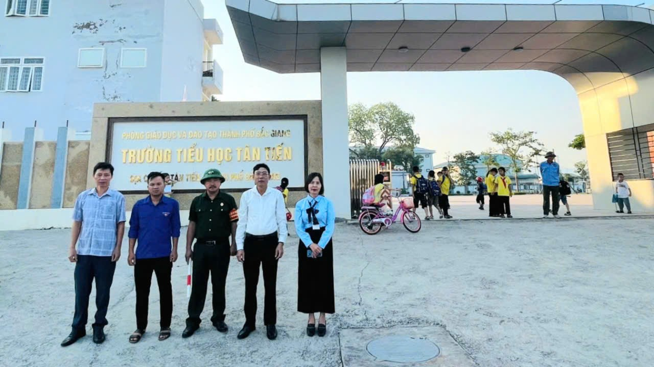 Trường Tiểu học Tân Tiến nằm trên khu vực có nhiều phương tiện qua lại. Tình hình trật tự an toàn giao thông trước cổng trường học luôn là nỗi lo lắng, trăn trở của cán bộ, giáo viên nhà trường. Để bảo đảm an ninh trật tự và an toàn giao thông trước và sau khi tan học, sự phối hợp chặt chẽ giữa nhà trường, gia đình và các tổ chức chính trị, đoàn thể của địa phương là vô cùng quan trọng. Trong đó, yếu tố quyết định là ý thức, văn hóa khi tham gia giao thông của các em học sinh, các bậc cha mẹ học sinh.