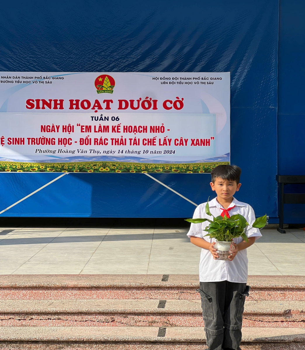 Ngày 14 tháng 10 năm 2024, trong tiết Sinh hoạt dưới cờ, Trường Tiểu học Võ Thị Sáu đã phối hợp với Đoàn phường Hoàng Văn Thụ tổ chức Ngày hội “En làm Kế hoạch nhỏ - Vệ sinh trường học - Đổi rác thải tái chế lấy cây xanh” lan tỏa thông điệp bảo vệ môi trường. Đây là hoạt động có ý nghĩa thiết thực nhằm bảo vệ nguồn nước sạch, vệ sinh cá nhân, vệ sinh môi trường; cải thiện hành vi vệ sinh cá nhân và vệ sinh môi trường của học sinh; đảm bảo việc sử dụng và bảo quản tốt công trình vệ sinh trong trường học, ở gia đình và trong cộng đồng. Phát huy ý thức của học sinh trong việc sử dụng, bảo quản công trình vệ sinh, xây dựng môi trường học tập, môi trường sống sáng - xanh - sạch - đẹp. Bảo vệ nguồn nước, giữ gìn vệ sinh cá nhân, vệ sinh môi trường; khích lệ khả năng sáng tạo, tinh thần đồng đội của học sinh.