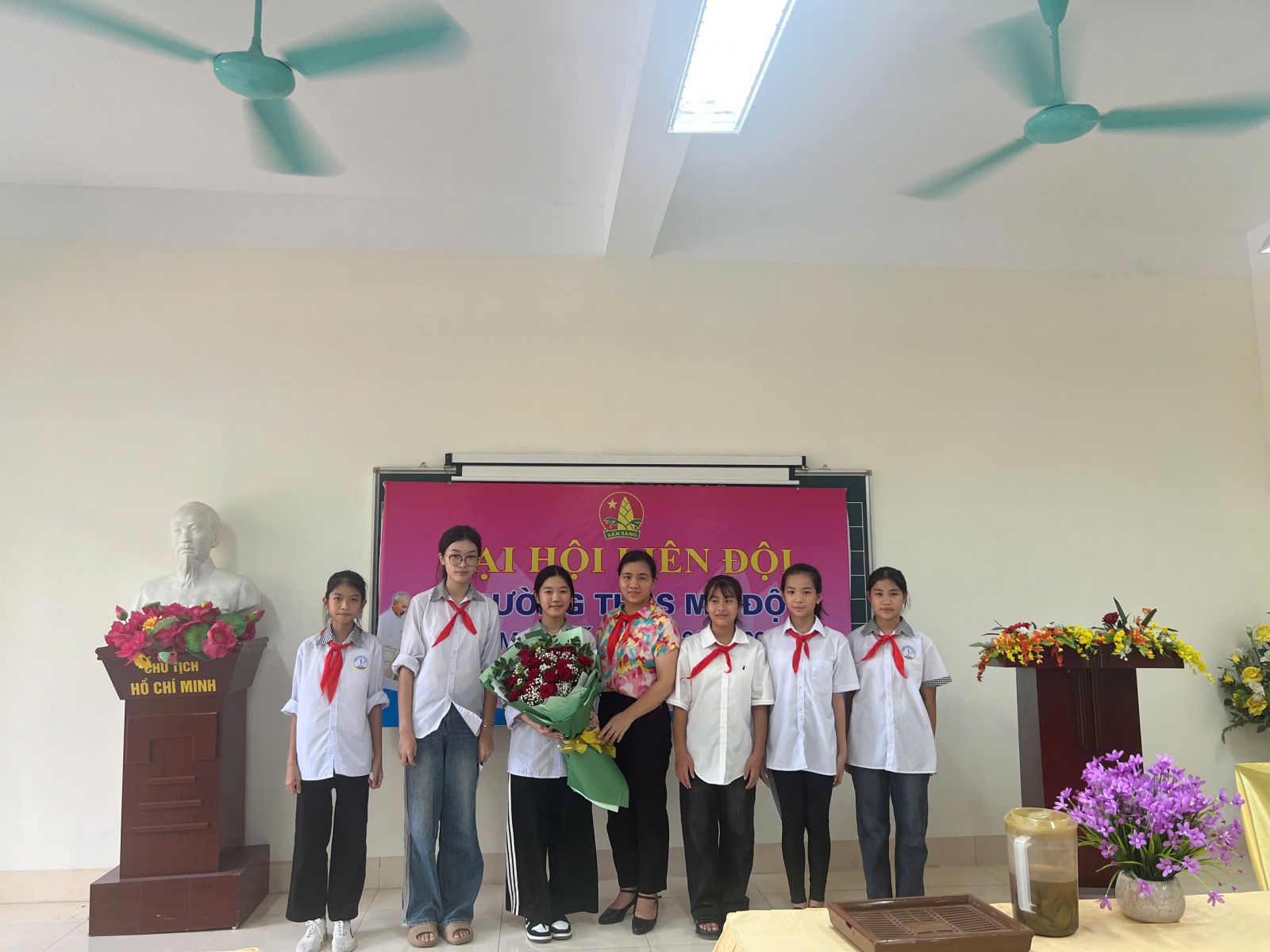 Đến dự và chỉ đạo Đại hội có sự hiện diện của: Chị Ngô Thị Phương Anh - Bí thư Đoàn phường – Chủ tịch hội đồng đội phường Mỹ Độ; Cô giáo Đinh Thị Huyền – Phó bí thư chi bộ - Phó hiệu trưởng nhà trường; cùng các thầy cô giáo là giáo viên phụ trách của 07 chi đội và đặc biệt là 21 bạn đội viên tiêu biểu của các chi đội.