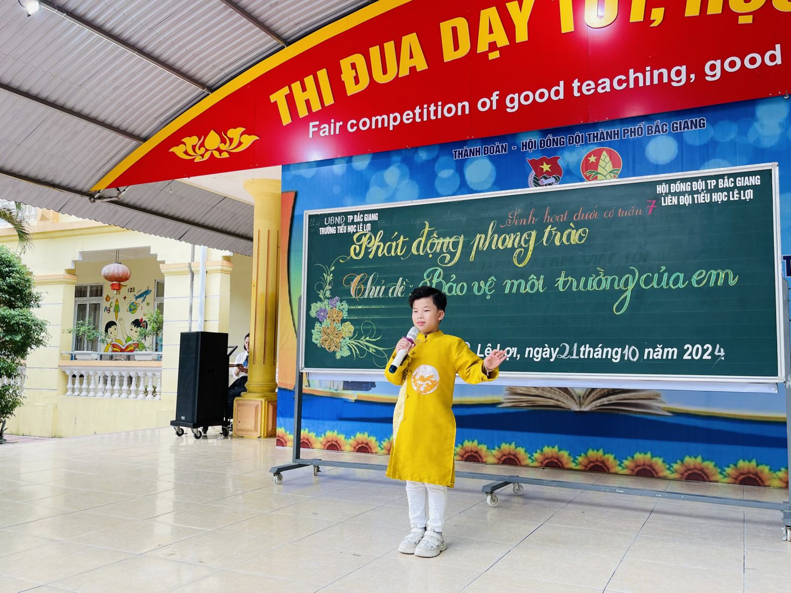 Trong buổi sinh hoạt dưới cờ hôm nay, các em học sinh đã cùng nhau chia sẻ về chủ đề “Bảo vệ môi trường của em”. Các em được giao lưu, trao đổi về nội dung tiểu phẩm và liên hệ các hành động bảo vệ môi trường phù hợp với lứa tuổi.