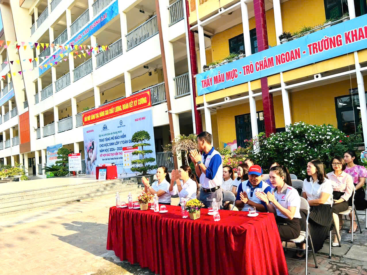 Đến dự với chương trình có chú Nguyễn Văn Tiến - Hướng dẫn viên Lái xe an toàn và các cô chú trong Head Việt Nhật, các bậc phụ huynh cùng toàn thể các thầy cô giáo, các em học sinh trong toàn trường.