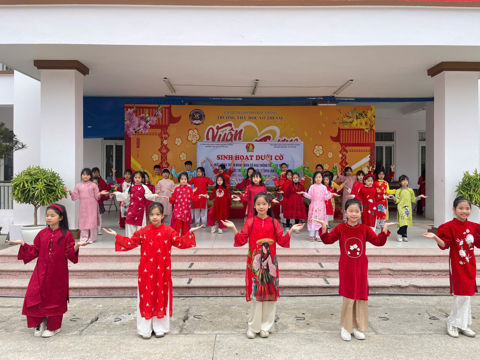 Nội dung buổi Sinh hoạt dưới cờ hôm nay là dịp để thầy trò Trường Tiểu học Võ Thị Sáu cùng nhau chào mừng kỷ niệm 95 năm Ngày thành lập Đảng Cộng sản Việt Nam (03/02/1930 -03/02/2025) một mốc son trong lịch sử cách mạng của dân tộc ta. Tinh thần đoàn kết, kiên cường và sáng tạo của những người con đất Việt vẫn luôn là nguồn động lực mạnh mẽ để thế hệ trẻ hôm nay tiếp tục học tập, cống hiến và phấn đấu vì một tương lai tươi sáng. Nhân dịp Xuân Ất Tỵ 2025, những hoạt động này càng thêm phần ý nghĩa, thể hiện sự mong muốn phát triển không ngừng của học sinh trong môi trường giáo dục hiện đại. Đây cũng là một lời chúc Tết ý nghĩa gửi đến các thầy cô, các bạn học sinh Trường Tiểu học Võ Thị Sáu - một năm mới an lành, hạnh phúc và thành công.