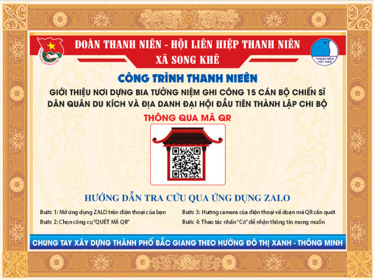 Đoàn xã Song Khê – Ra mắt Công trình thanh niên “Giới thiệu nơi dựng bia tưởng niệm 15 CBCS dân quân du kích và địa danh Đại hội đầu tiên thành lập chi bộ” thông qua mã QR