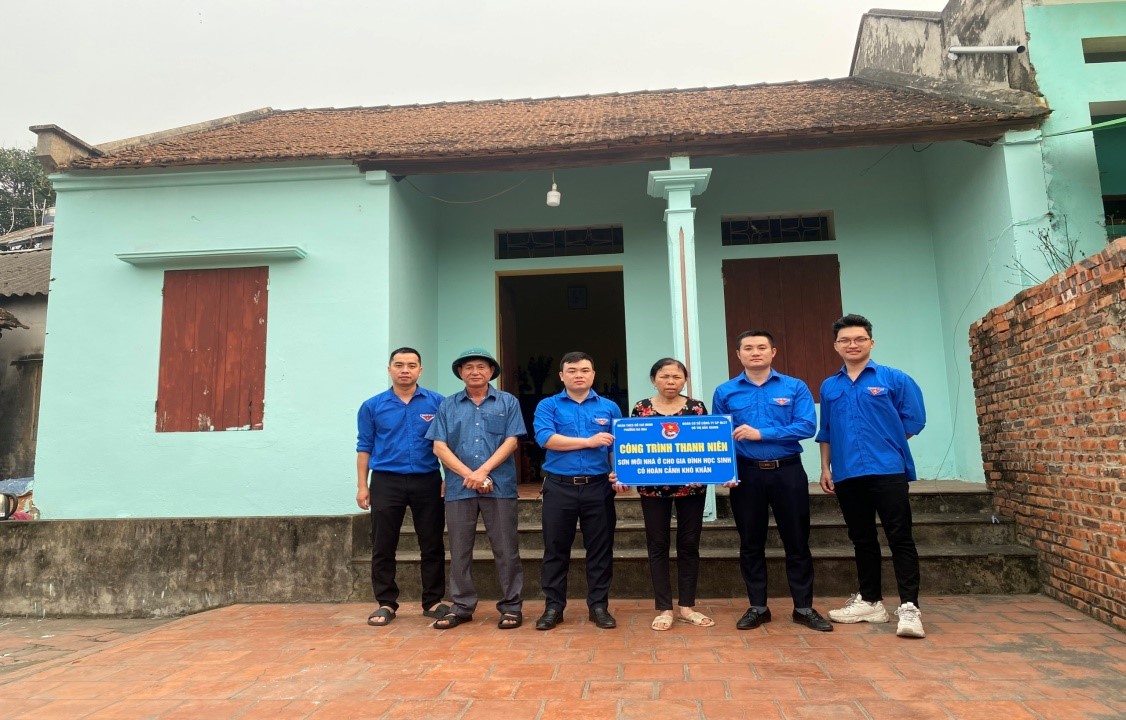 Đoàn phường Đa Mai phối hợp với Đoàn cơ sở Công ty CP QLCT Đô thị Bắc Giang sơn mới lại nhà cho gia đình có hoàn cảnh khó khăn