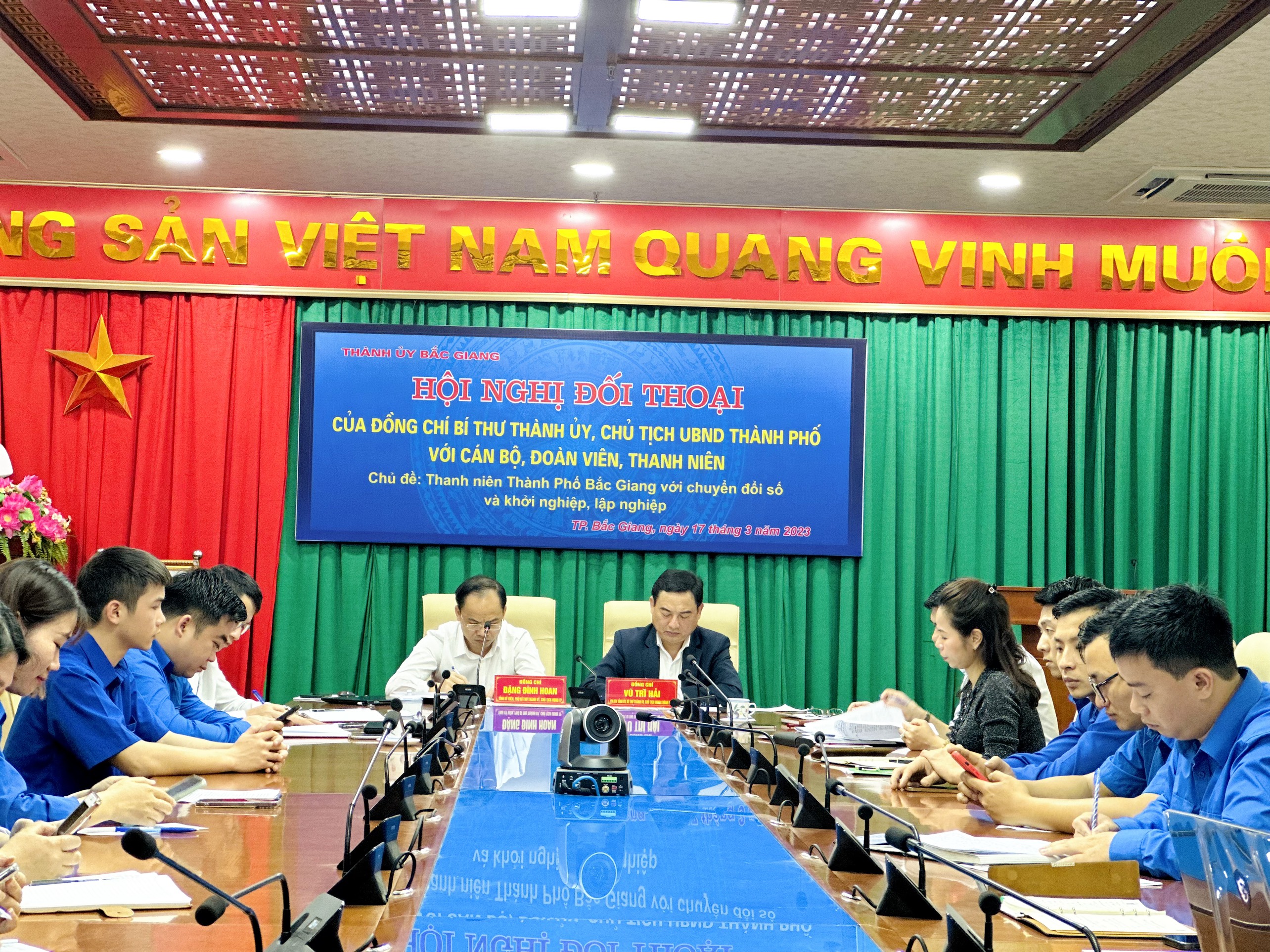 Đồng chí Bí thư Thành uỷ và Chủ tịch UBND thành phố đối thoại với cán bộ, đoàn viên, thanh niên