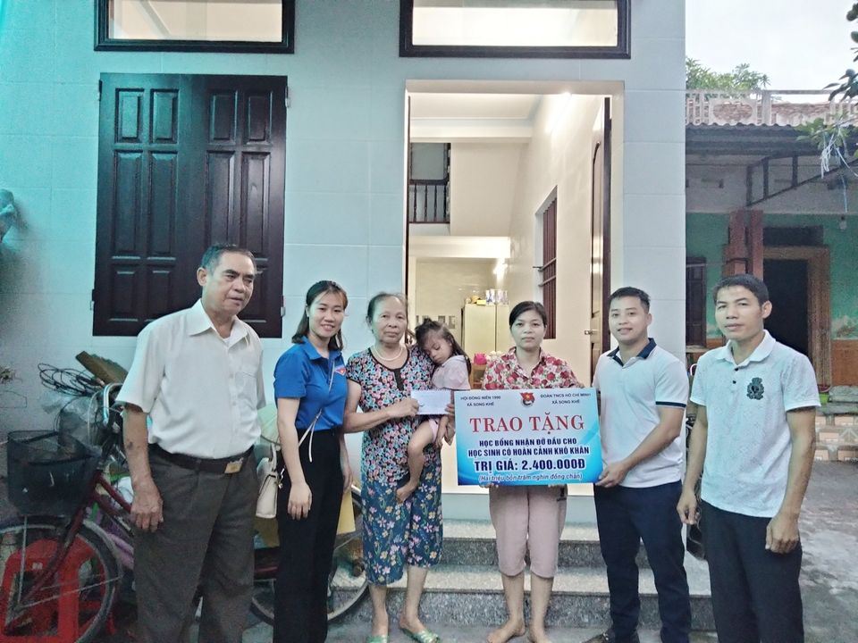 Đoàn xã Song Khê: trao học bổng đỡ đầu