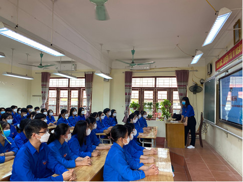 Hội nghị học tập các bài lý luận chính trị cho đoàn viên mới tại Đoàn trường THPT Nguyên Hồng.