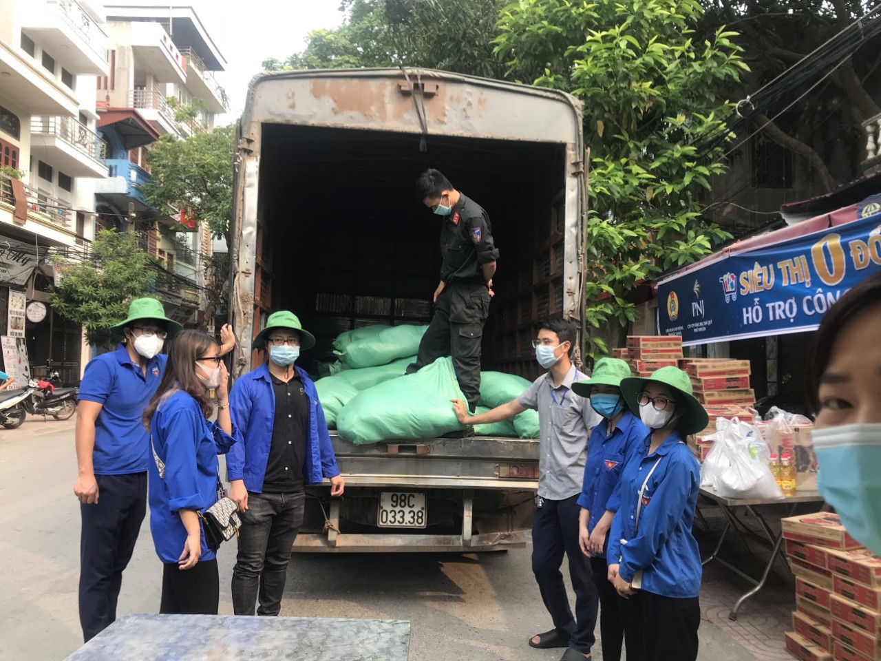 Thành đoàn trao tặng nhu yếu phẩm và vật tư y tế Bệnh viện dã chiến số 2, siêu thị 0 đồng xã Song Khê và một số đơn vị có khu cách ly y tế