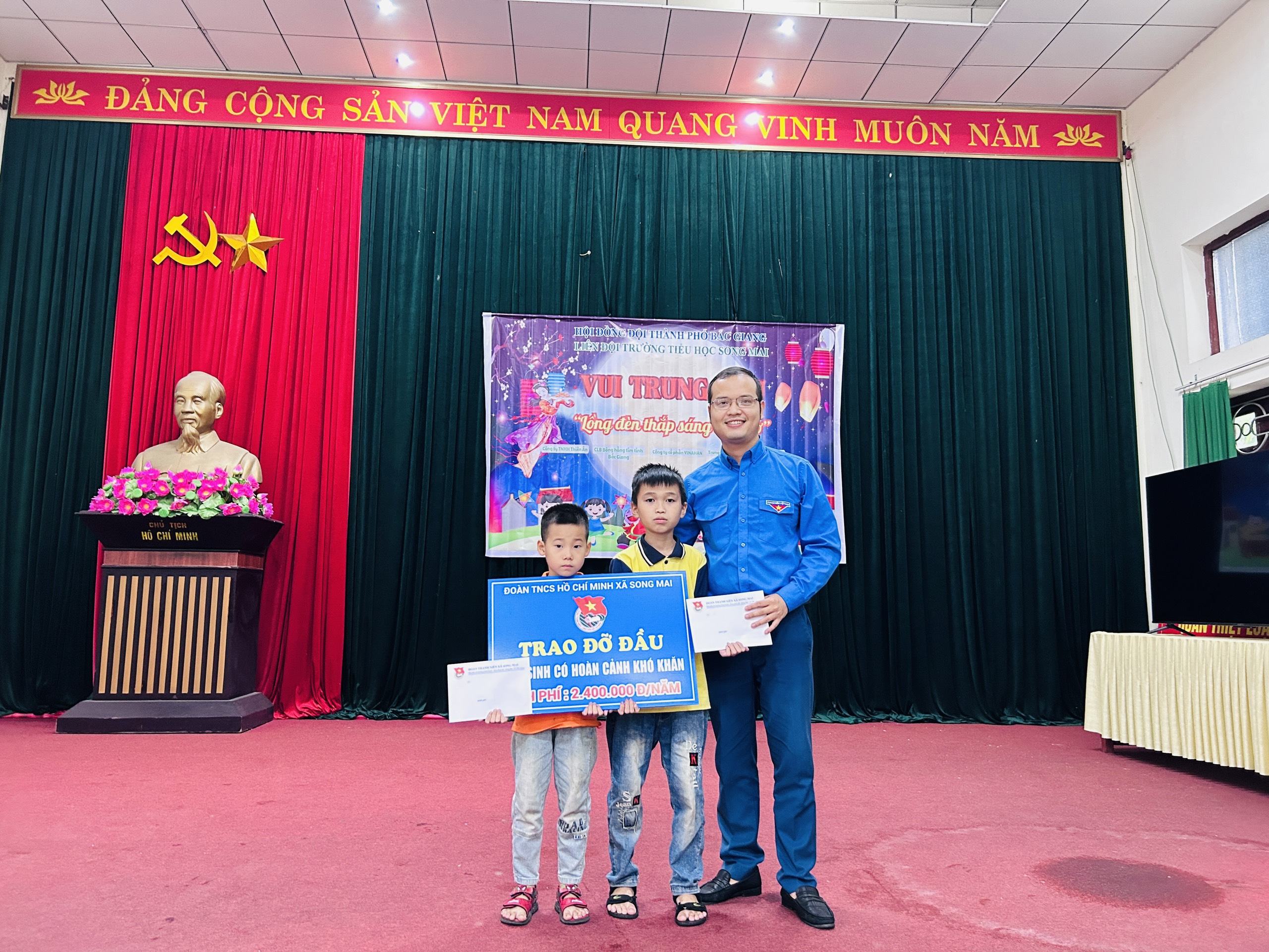 Đoàn thanh niên xã Song Mai trao đỡ đầu cho học sinh có hoàn cảnh khó khăn vươn lên trong học tập