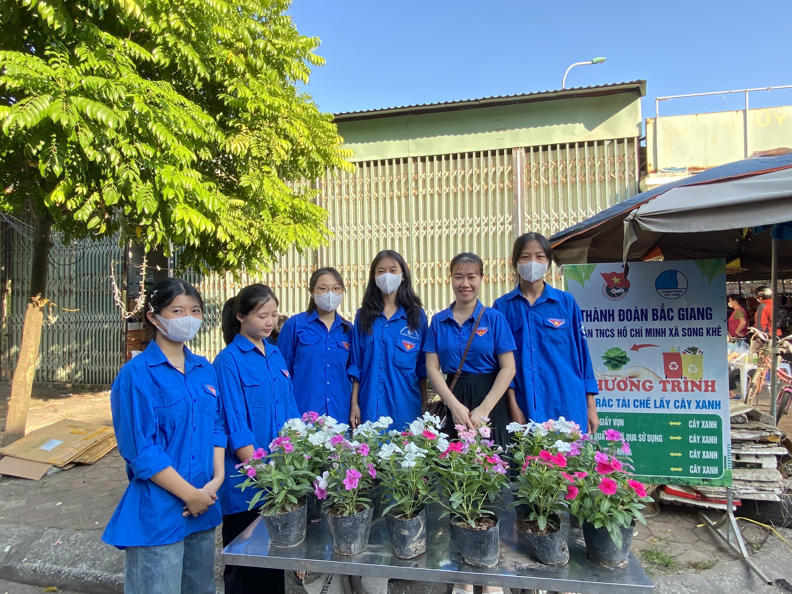 Đoàn xã Song Khê tổ chức chương trình “ Đổi rác thải tái chế lấy cây xanh”