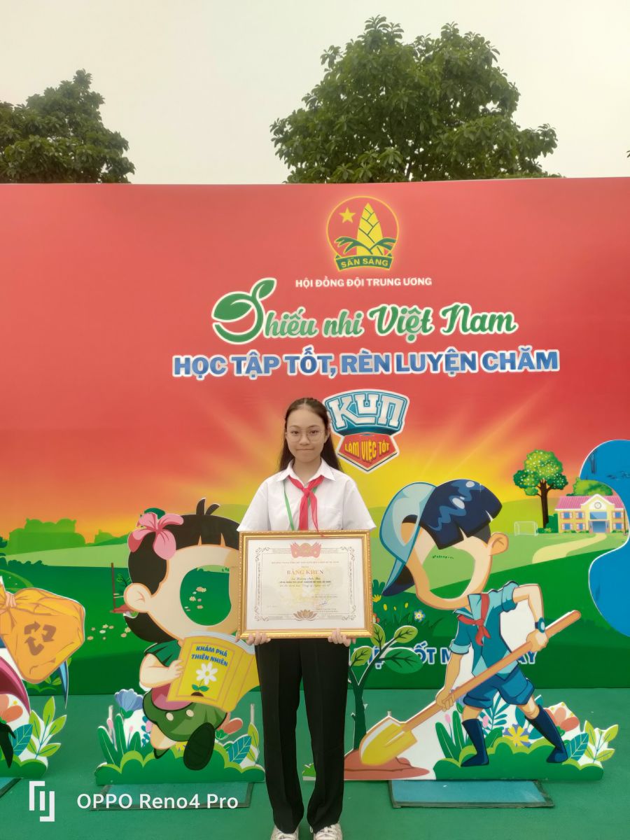 Học sinh trường THCS Tân Mỹ nhận Bằng khen “Dũng sỹ nghìn việc tốt” của Hội đồng Đội Trung ương