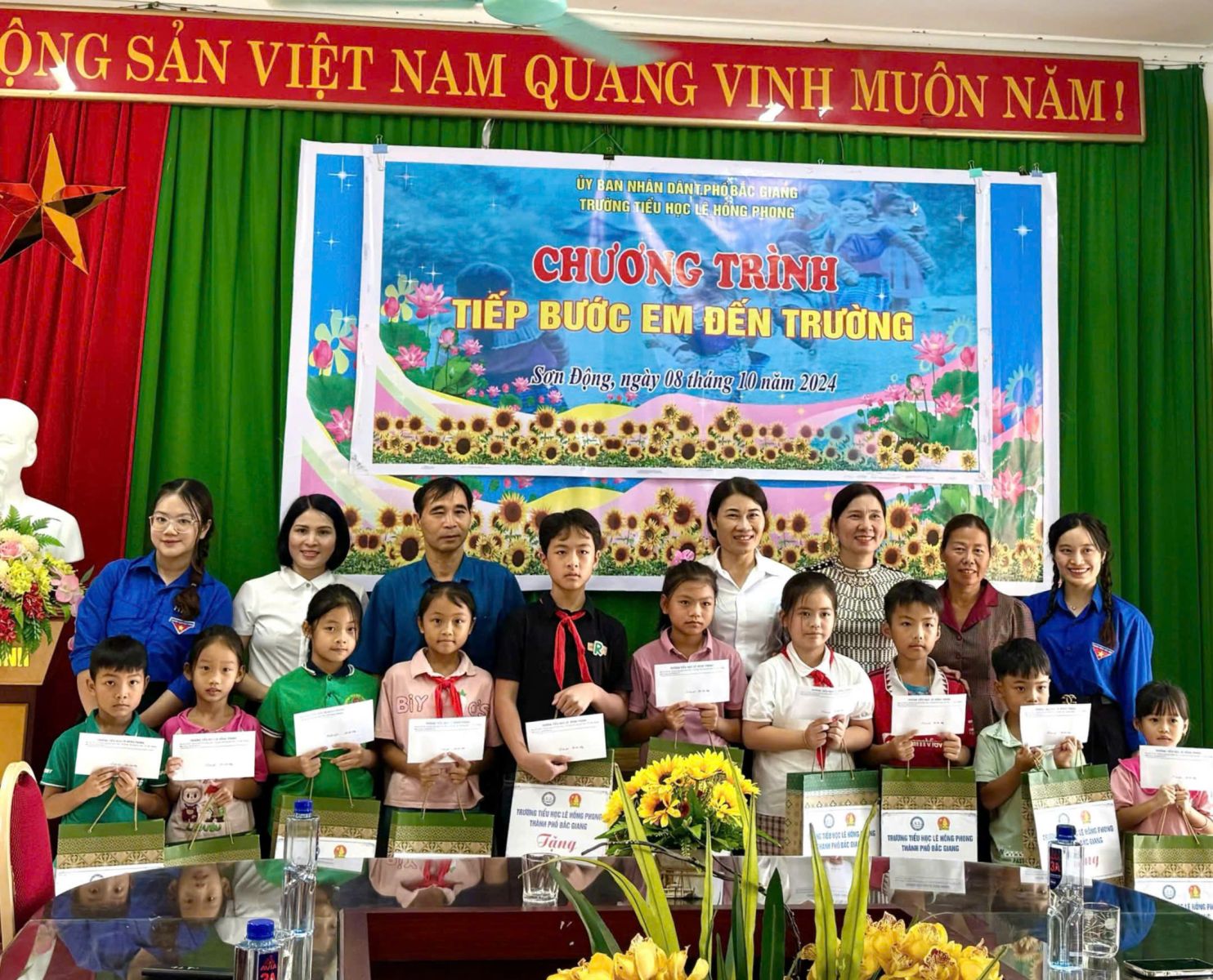 Chương trình "Tiếp bước em đến trường" của Trường Tiểu học Lê Hồng Phong, thành phố Bắc Giang tại huyện Sơn Động