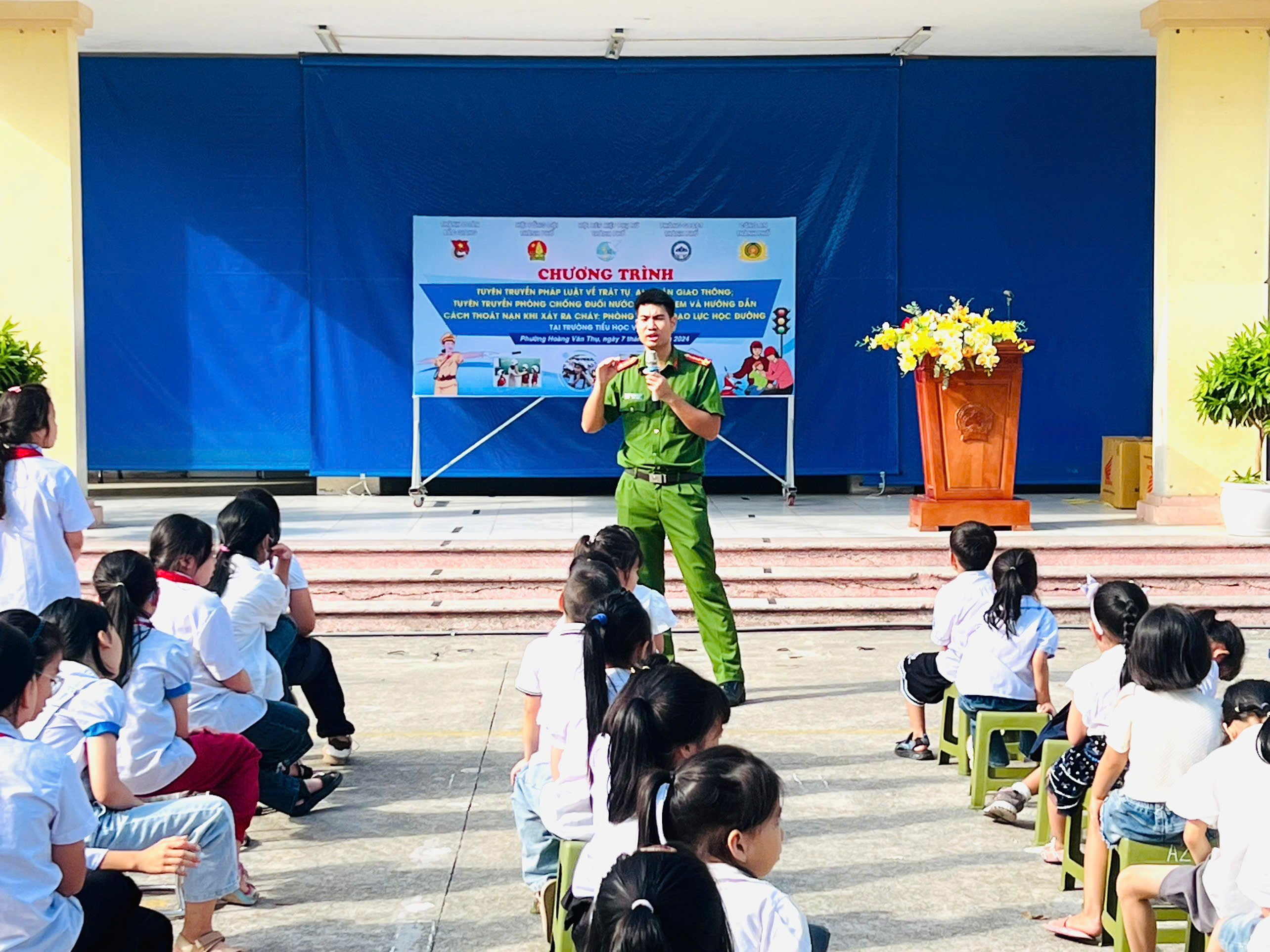 Liên đội Trường Tiểu học Võ Thị Sáu Tổ chức buổi tuyên truyền pháp luật về trật tự ATGT; tuyên truyền phòng chống đuối nước cho trẻ em và hướng dẫn cách thoát nạn khi xảy ra cháy;