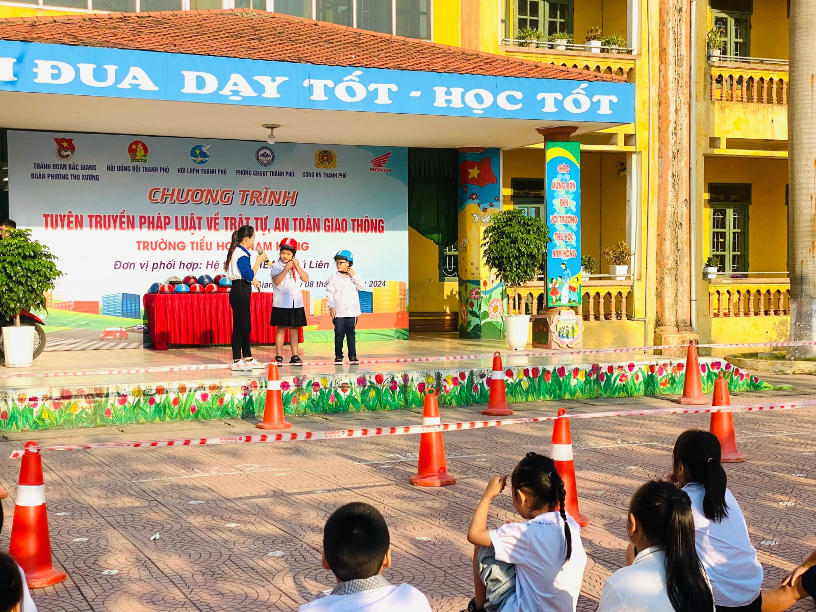 Trường Tiểu học Nam Hồng phối kết hợp với Công ty Honda Phú Liên tổ chức Chương trình" Tuyên truyền pháp luật về trật tự, An toàn giao thông"
