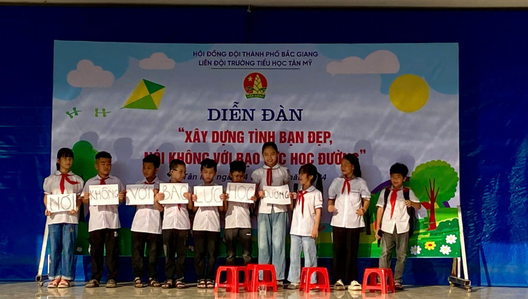Liên đội Trường Tiểu học Tân Mỹ đã tổ chức buổi sinh hoạt dưới cờ với chủ đề “Xây dựng tình bạn đẹp, nói không với bạo lực học đường”