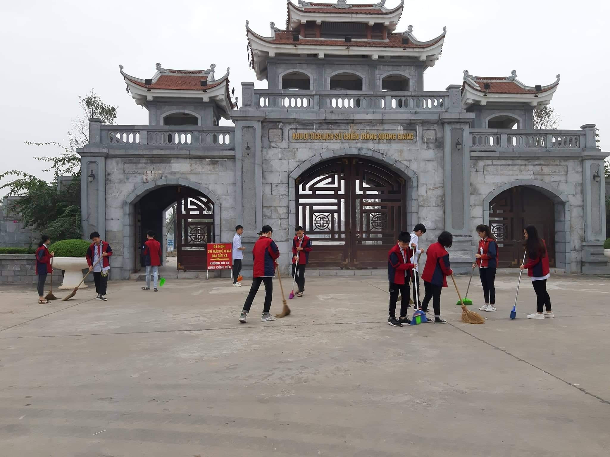 Các em đội viên Liên đội trường THCS Xương Giang tham gia lao động vệ sinh hưởng ứng phong trào Ngày chủ nhật xanh hàng tuần.