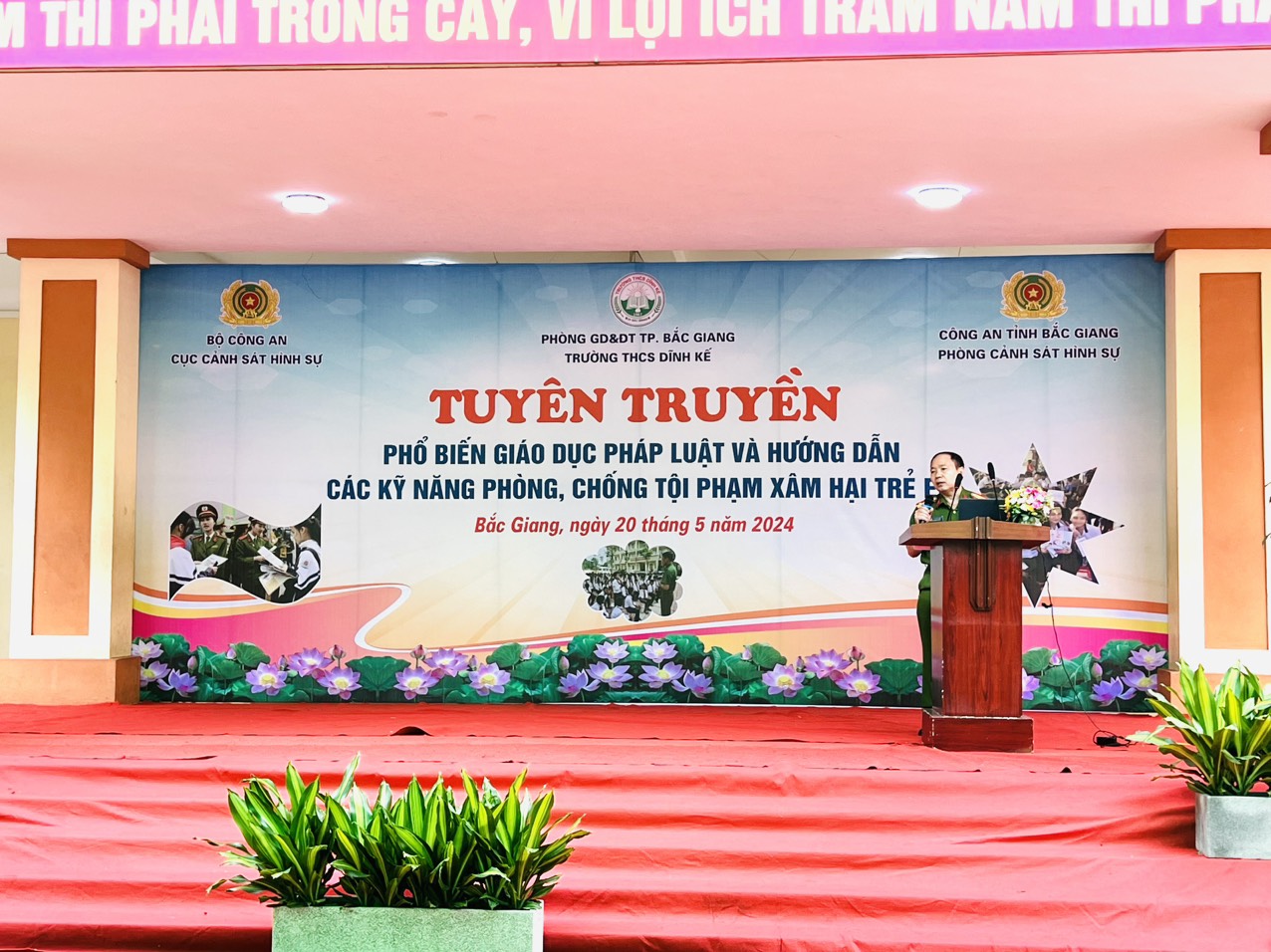 Liên đội Trường THCS Dĩnh Kế tổ chức tuyên truyền phổ biến giáo dục pháp luật và hướng dẫn các kĩ năng phòng chống tội phạm xâm hại trẻ em