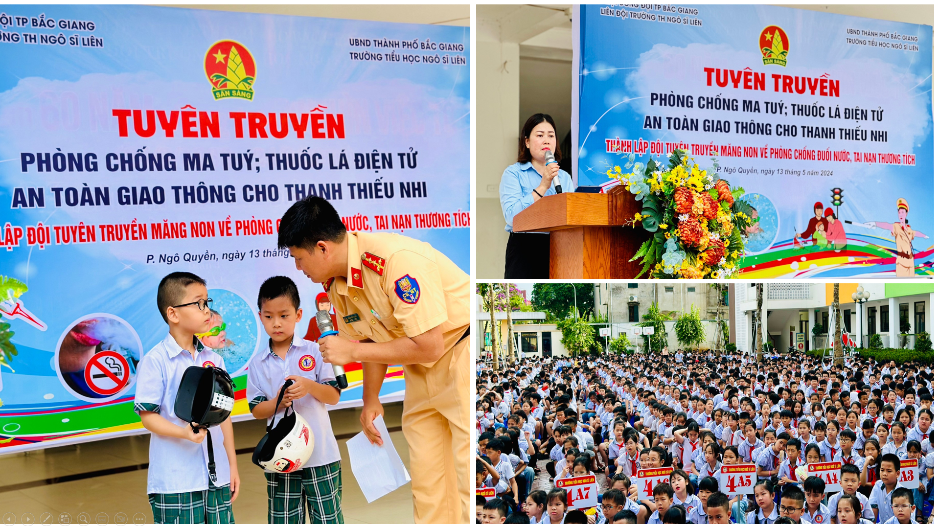 Trường Tiểu học Ngô Sĩ Liên tổ chức buổi tuyên truyền ATGT; phòng tránh ma túy, thuốc lá điện tử cho thanh thiếu nhi và ra mắt đội tuyên truyền măng non phòng chống đuối nước, tai nạn thương tích năm học 2023-2024.