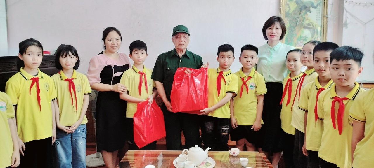 Cô và trò Trường Tiểu học Tân Tiến thăm, tri ân nhân chứng lịch sử trong chiến dịch Điện Biên Phủ