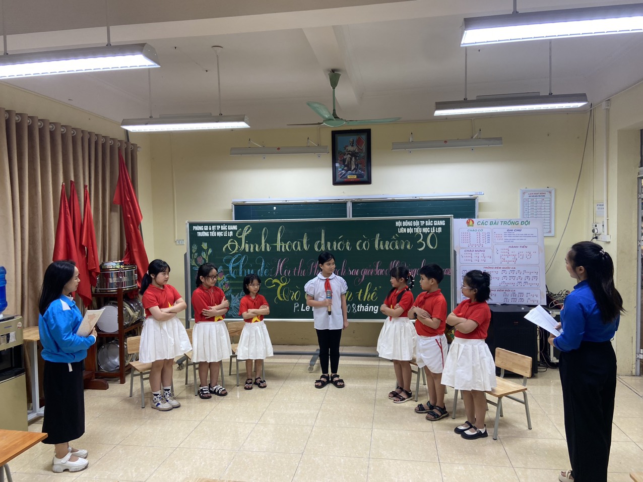Liên đội Trường Tiểu học Lê Lợi - Thành phố Bắc Giang - Tổ chức Sinh hoạt dưới cờ tuần 30 với chủ đề: "Hội thi Phụ trách sao giỏi Sao Nhi đồng chăm ngoan".
