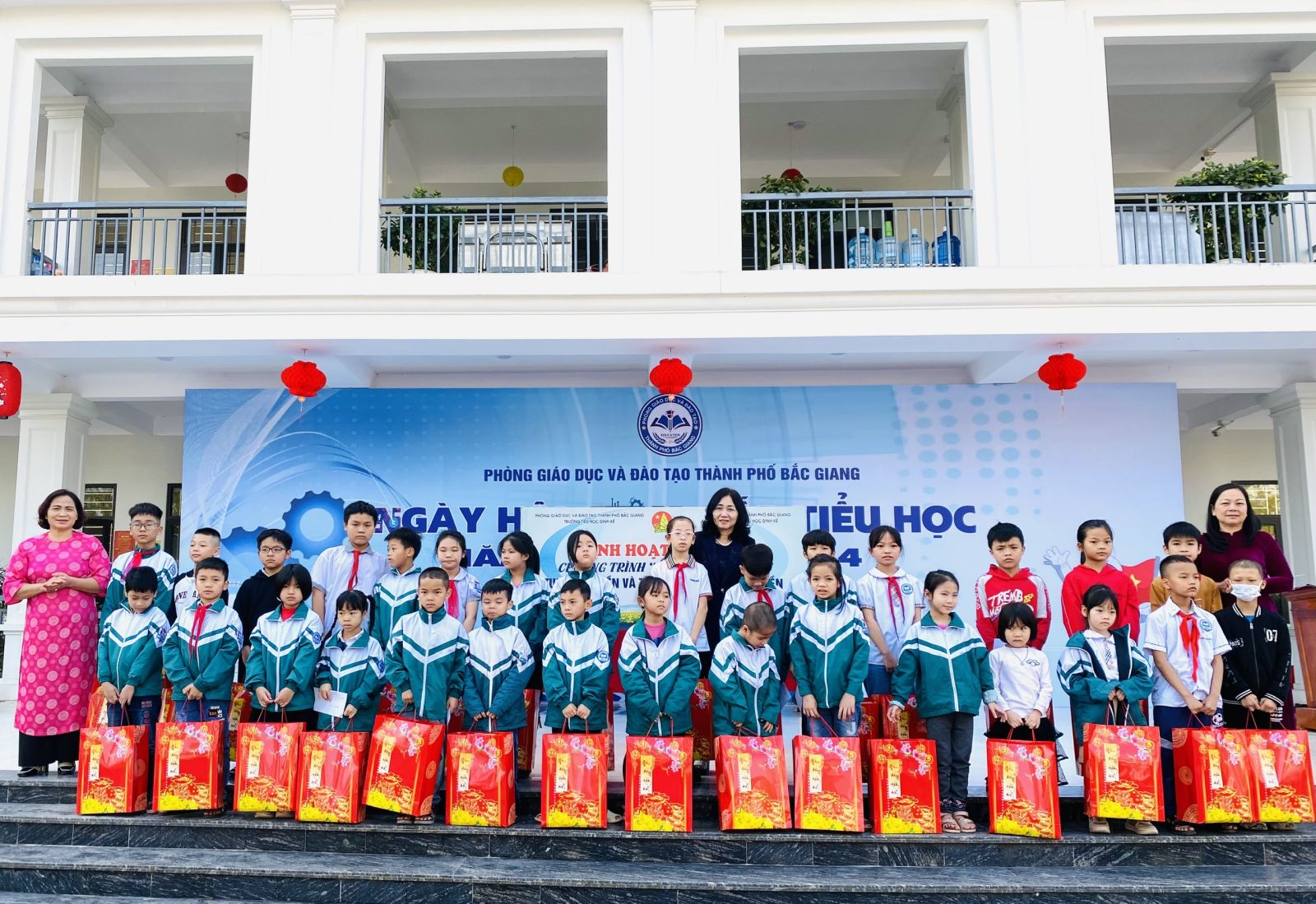 Trường Tiểu học Lê Lợi - Thành phố Bắc Giang, tổ chức chương trình Xuân ấm áp - Tết yêu thương, tặng quà cho học sinh có hoàn cảnh khó khăn nhân dịp Tết Giáp Thìn.