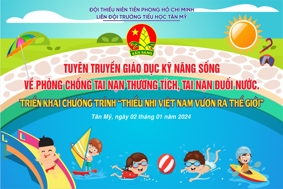 Liên đội trường Tiểu học Tân Mỹ tuyên truyền giáo dục kỹ năng sống về phòng chống tai nạn thương tích, tai nạn đuối nước và triển khai chương trình”Thiếu nhi Việt Nam vươn ra thế giới”