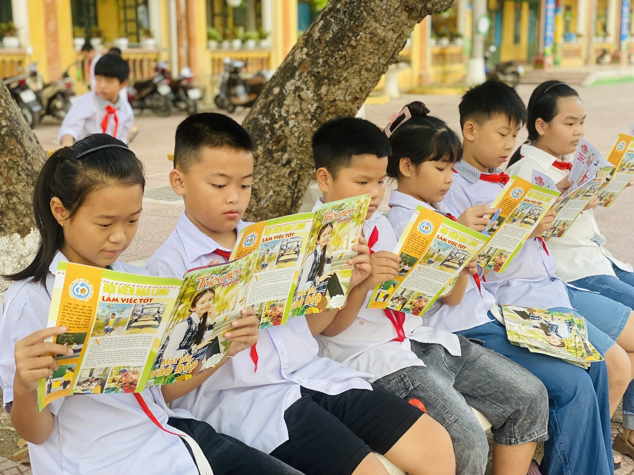 Sôi nổi phong trào đọc và làm theo báo Đội của học sinh Trường Tiểu học Nam Hồng.