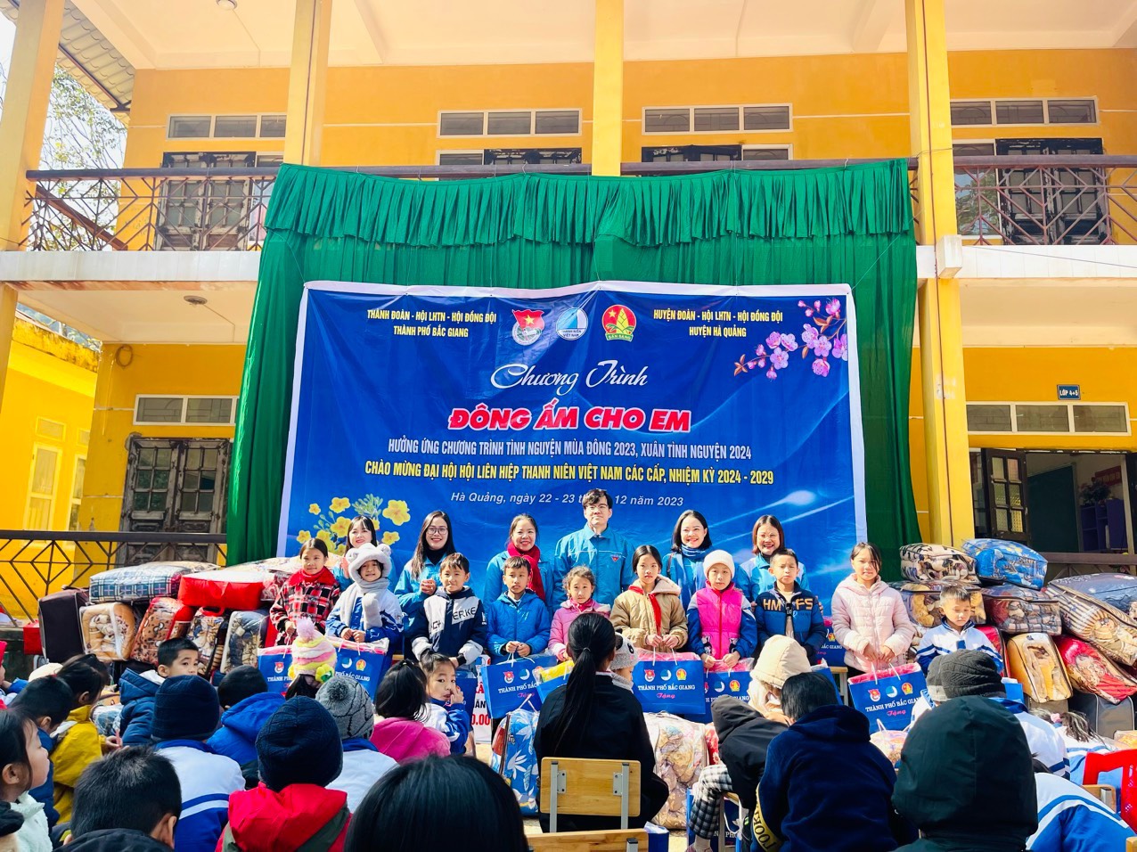 Liên đội Trường Tiểu học Ngô Sĩ Liên tham gia Chương trình “Đông ấm cho em” tại huyện Hà Quảng, tỉnh Cao Bằng.