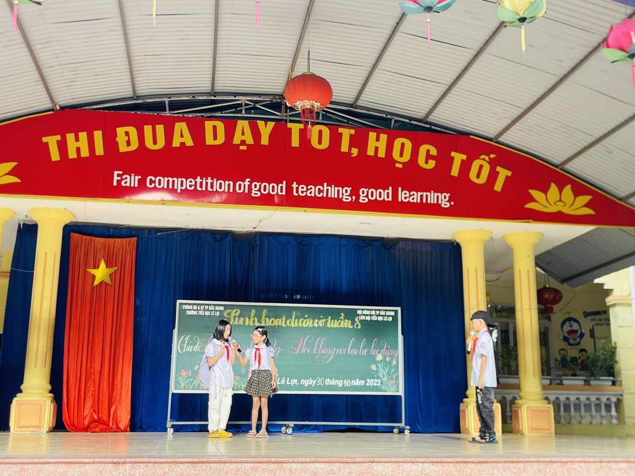Liên đội Trường Tiểu học Lê Lợi tổ chức sinh hoạt dưới với chủ điểm: “Xây dựng tình bạn đẹp - Nói không với bạo lực học đường”.