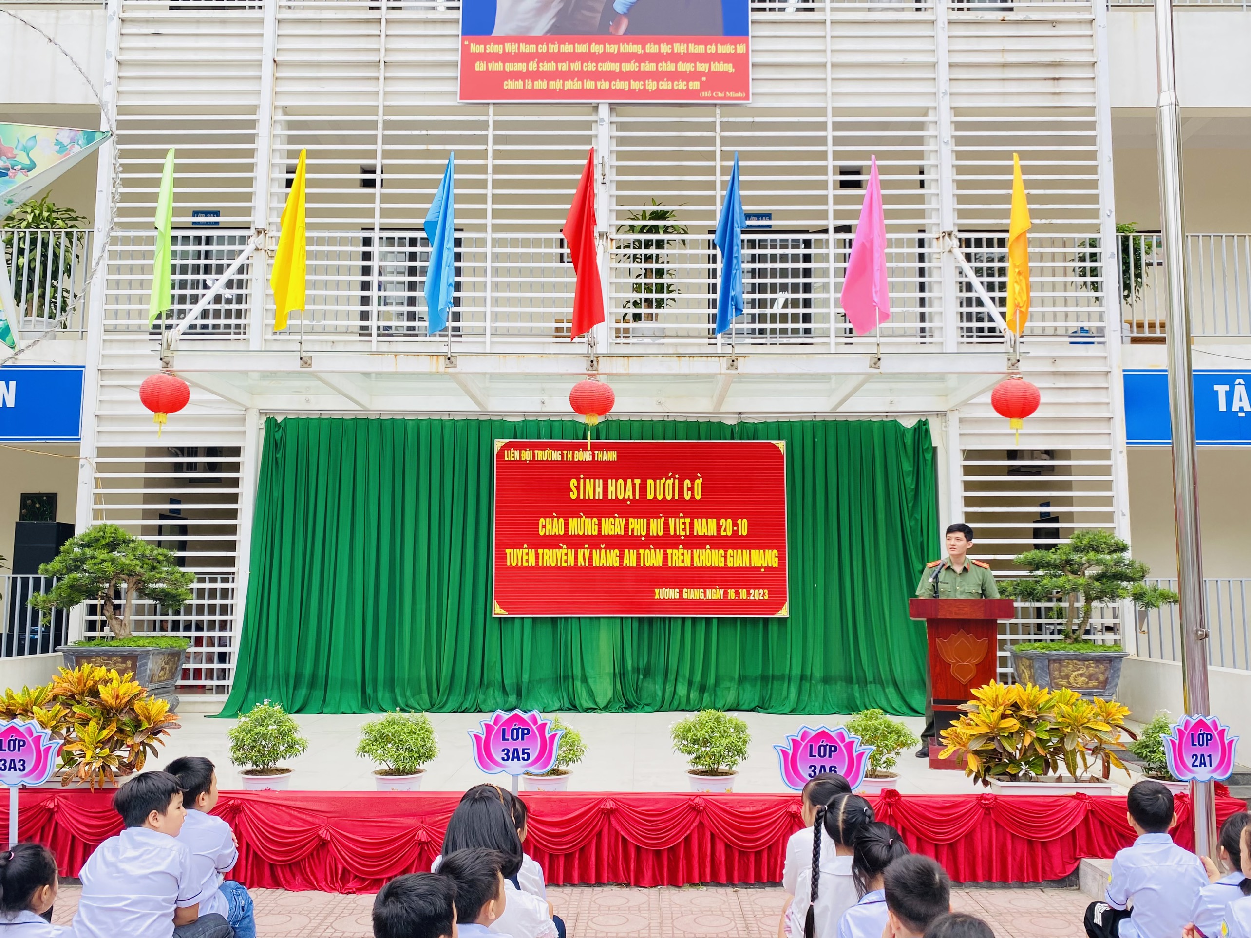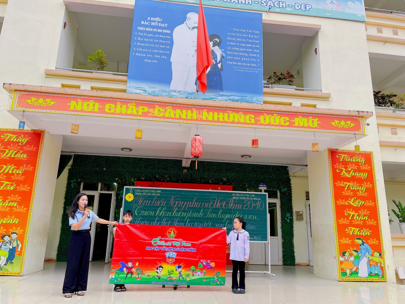 Trường Tiểu học Trần Phú tổ chức sinh hoạt dưới cờ với chủ đề: Tìm hiểu ngày phụ nữ Việt nam 20/10. Triển khai chương trình “Rèn luyện đội viên”, “Thiếu nhi Việt Nam học tập tốt, rèn luyện chăm”