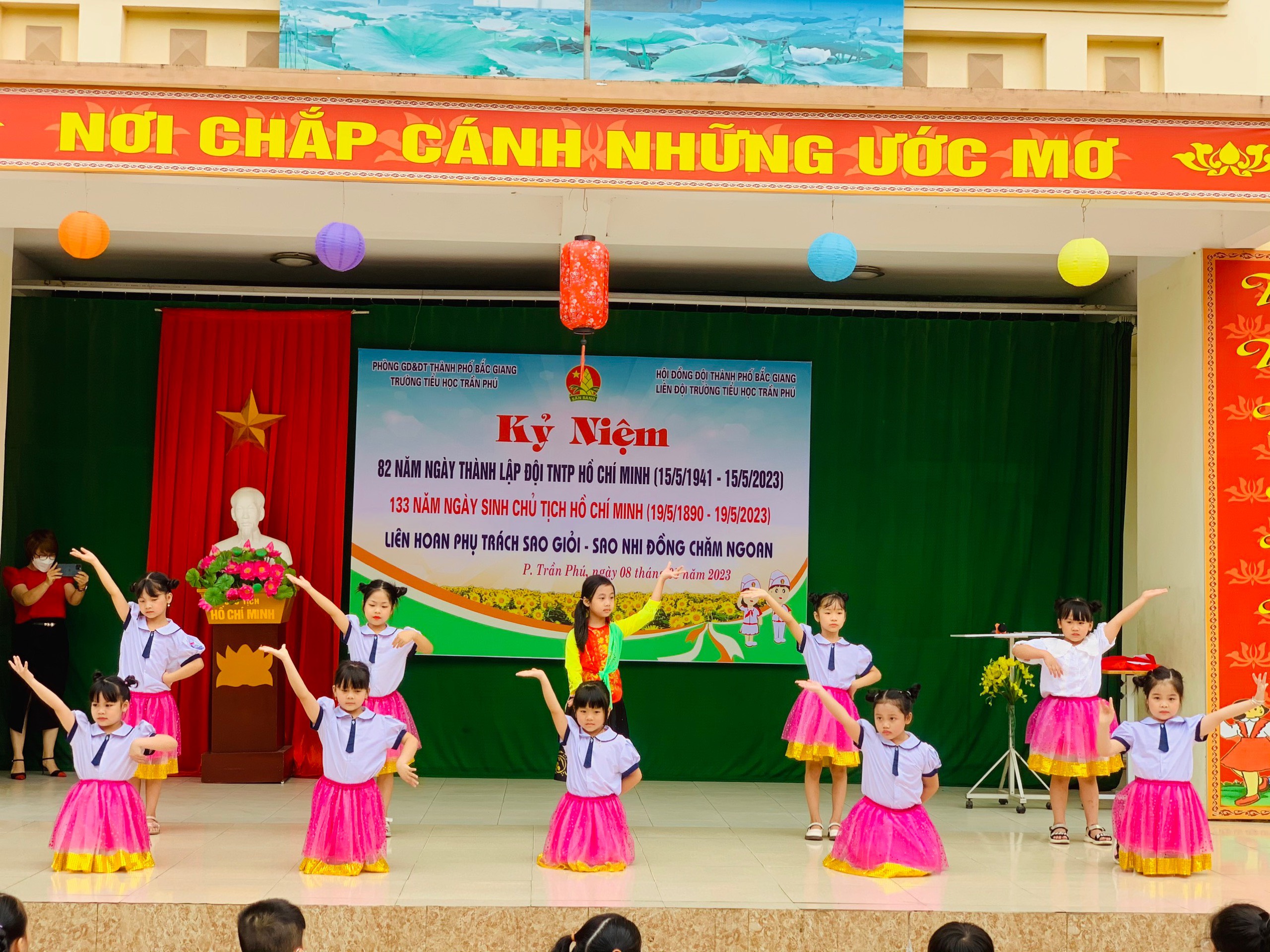 Liên đội Trường Tiểu học Trần Phú tổ chức kỉ niệm 82 năm ngày thành lập Đội TNTP Hồ Chí Minh; 133 năm ngày sinh Bác Hồ kính yêu. Liên hoan phụ trách Sao giỏi - Sao nhi đồng chăm ngoan năm học 2022-2023