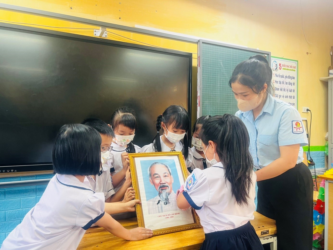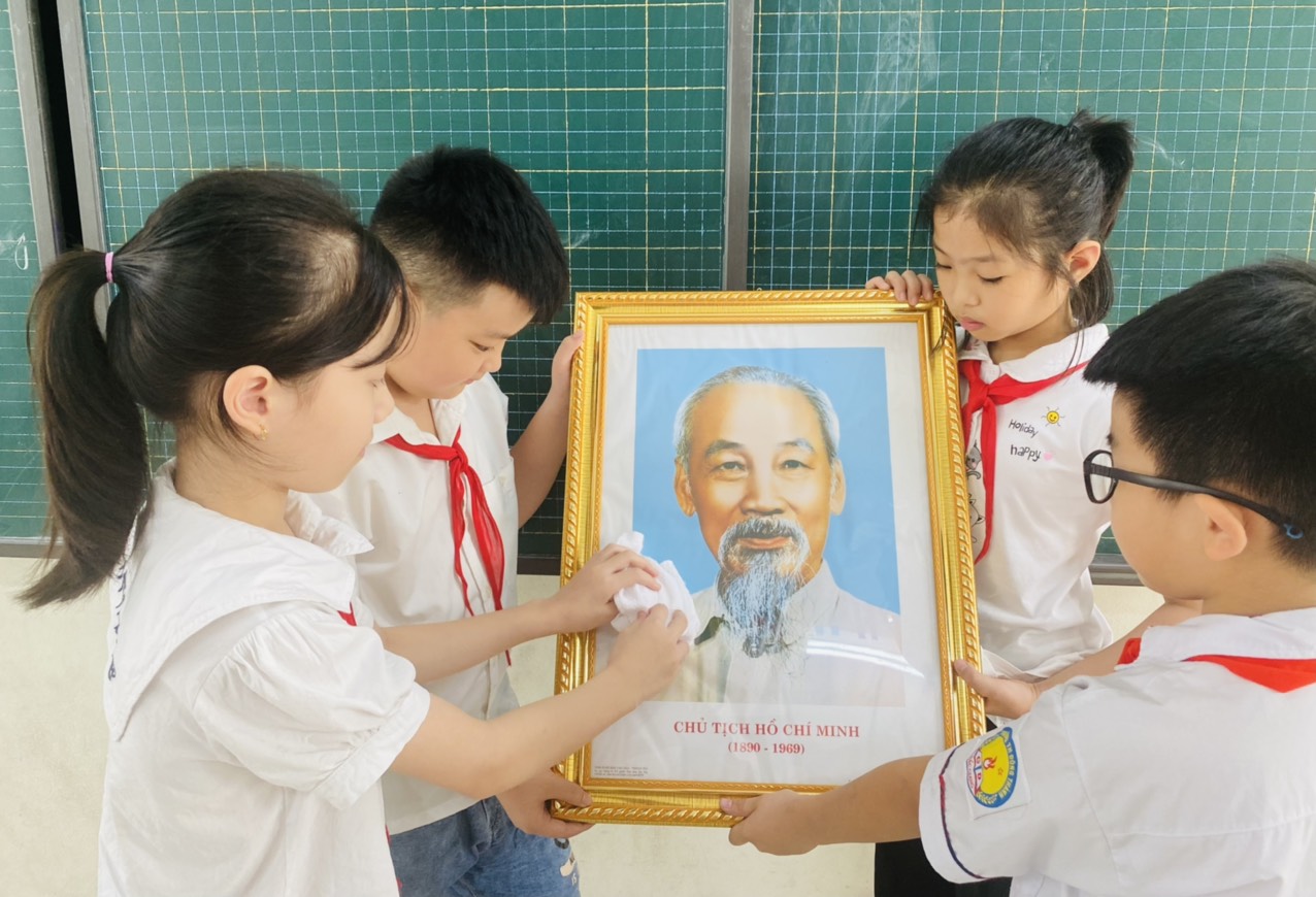 Liên đội Trường Tiểu học Trần Phú thực hiện tốt cuộc vận động “Lớp em treo ảnh Bác Hồ”
