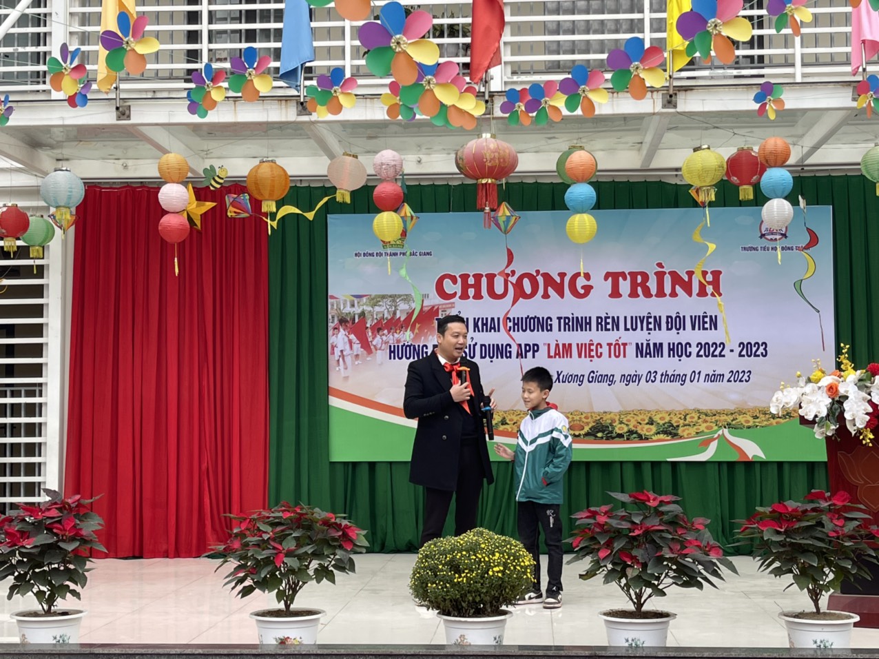 Tổ chức điểm Chương trình rèn luyện đội viên, hướng dẫn sử dụng APP “Làm việc tốt” năm học 2022- 2023 tại Liên đội Trường tiểu học Đông Thành
