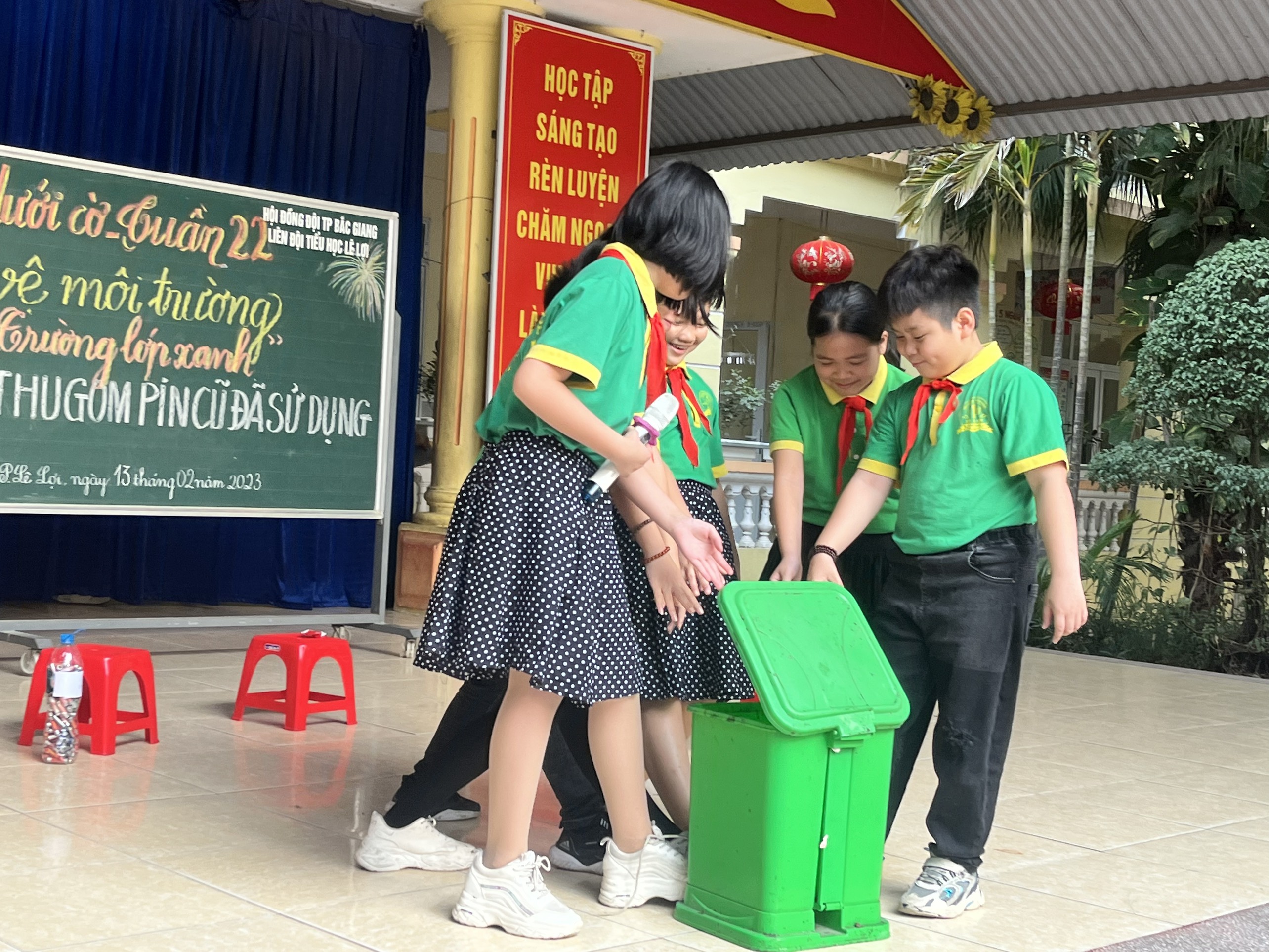 Liên đội Trường Tiểu học Lê Lợi - Thành phố Bắc Giang - tổ chức sinh hoạt dưới cờ tuần 22 với chủ đề “Bảo vệ môi trường, mô hình trường lớp xanh gắn với thu gom pin đã qua sử dụng”.