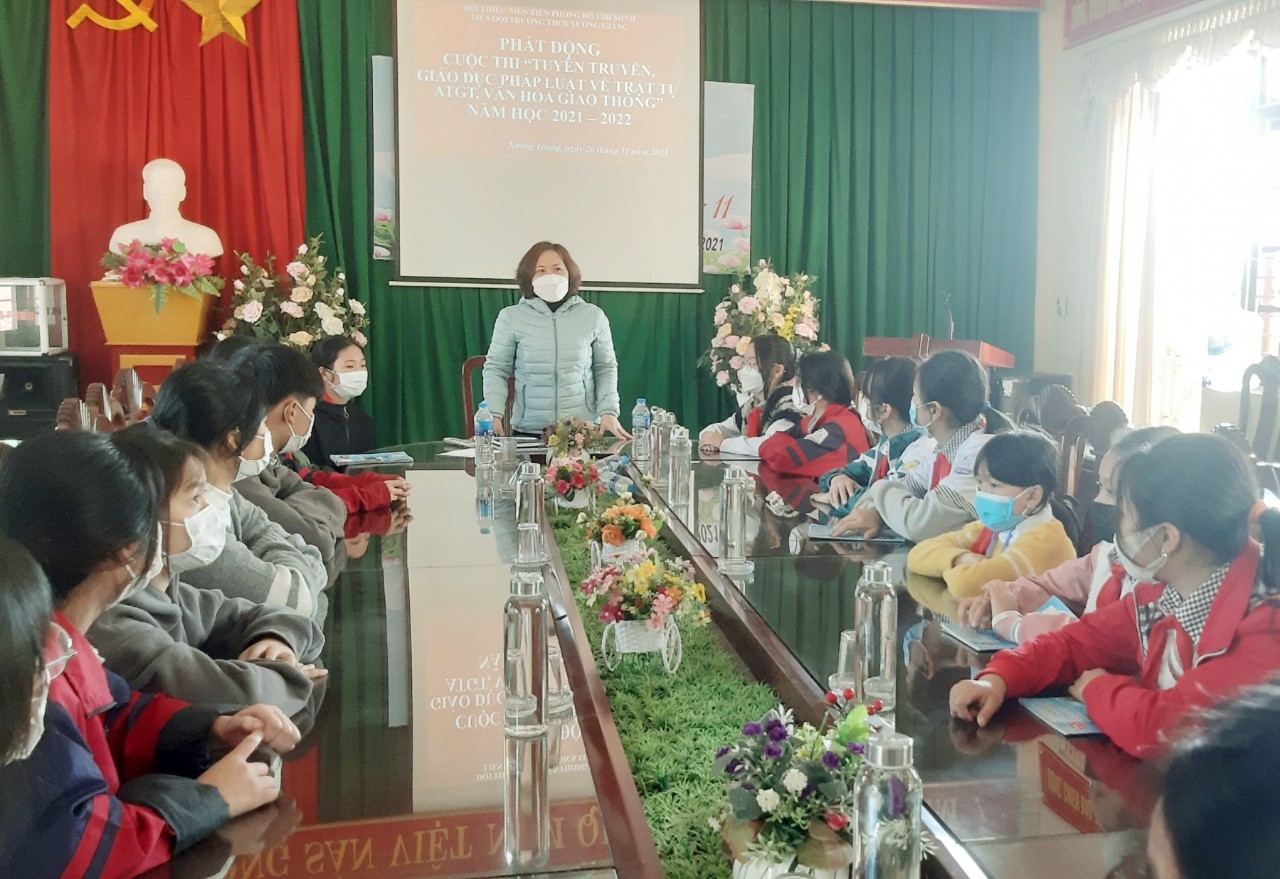 Học sinh trường THCS Xương Giang tham gia các hoạt động tuyên truyền, giáo dục về ATGT năm học 2021-2022.