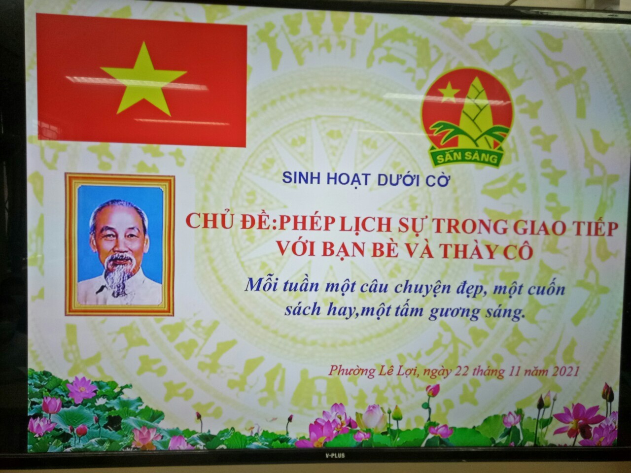 Liên đội trường Tiểu học Lê Lợi tổ chức sinh hoạt liên đội dưới cờ chủ đề: "Mỗi tuần một câu chuyên đẹp, một cuốn sách hay, một tấm gương sáng"