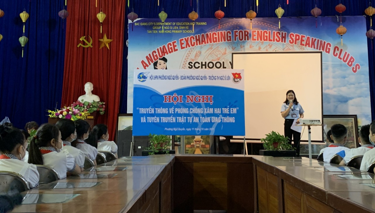 Liên đội trường tiểu học Ngô Sĩ Liên phối hợp tổ chức tuyên truyền “Phòng chống xâm hại trẻ em”; “Phổ biến, giáo dục pháp luật về TT ATGT” cho CBGV và học sinh.
