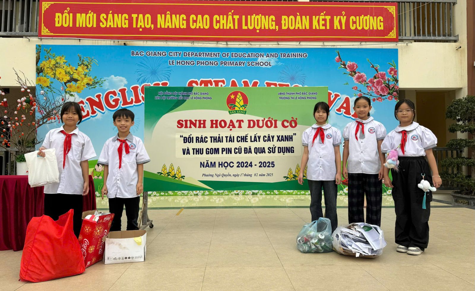 Hoạt động “Đổi rác lấy cây xanh” và thu gom pin cũ đã qua sử dụng tại Liên đội Trường Tiểu học Lê Hồng Phong