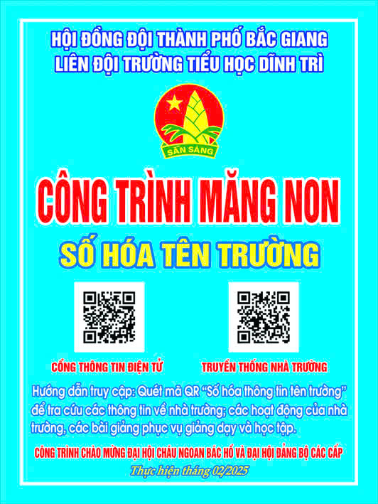 Liên đội Trường Tiểu học Dĩnh Trì ra mắt Công trình măng non: "Số hoá thông tin tên trường" với chủ đề “Tự hào truyền thống trường em”