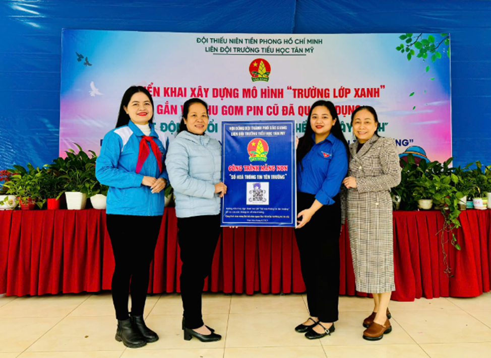 Liên đội Trường Tiểu học Tân Mỹ đã triển khai xây dựng mô hình "Trường lớp xanh" gắn với thu gom pin cũ đã qua sử dụng; Hoạt động đổi rác thải lấy cây xanh; Ra mắt công trình măng non "Số hóa thông tin tên trường" và "Thư viện điện tử"